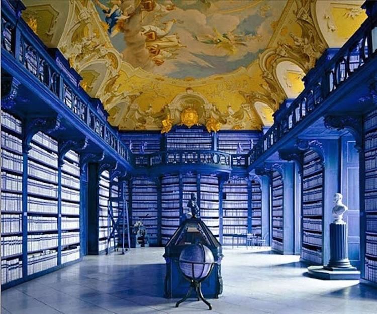blue, library, yellow, Architecture
